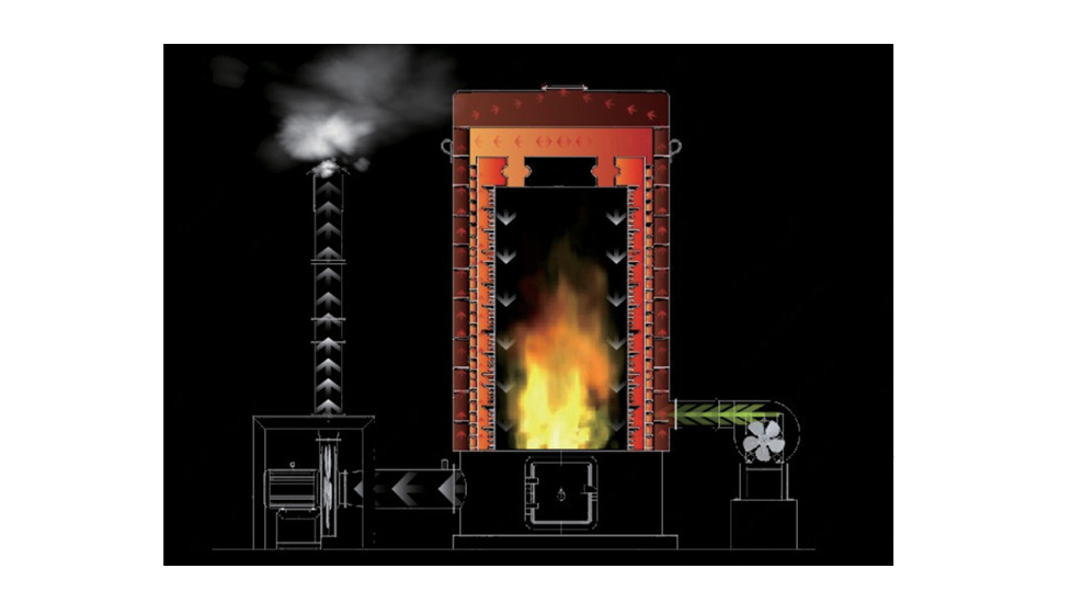 工作原理:燃生物质在炉膛内产生高温烟气,在风机的作用下进入烟环,与外侧空气进行热交换后,经烟道由烟肉排出,冷空气由效风机吹入热风炉外壳,经炉顶流入炉膛外例空气环,由热风出口管道供给需干净热风的设备。
